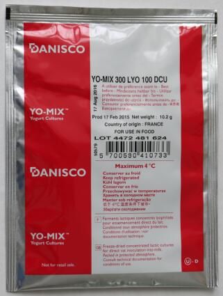 9. 儲存條件:酸奶菌種YO-MIX 300 LYO 100 DCU是直投式凍干菌種,儲存在4℃以下,保質(zhì)期為18個月。儲存在-18℃或-18℃以下,保質(zhì)期為24個月。