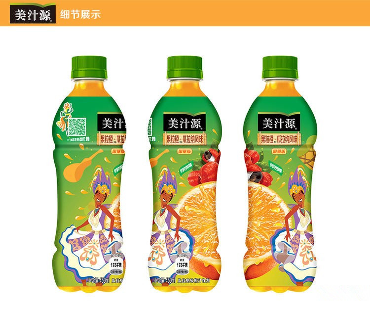“淳萃”跟美汁源果粒系列比,除了瓶身和視覺(jué)有變化之外,值得注意的是“淳萃”的果汁含量比原來(lái)提高了許多。果粒橙和爽粒葡萄的果汁含量在 10% 左右,現(xiàn)在的“淳萃”檸檬味含有 30%復(fù)合果汁;橙的果汁含量達(dá)到了 40%。